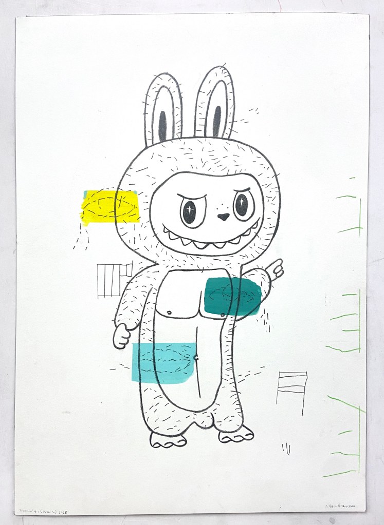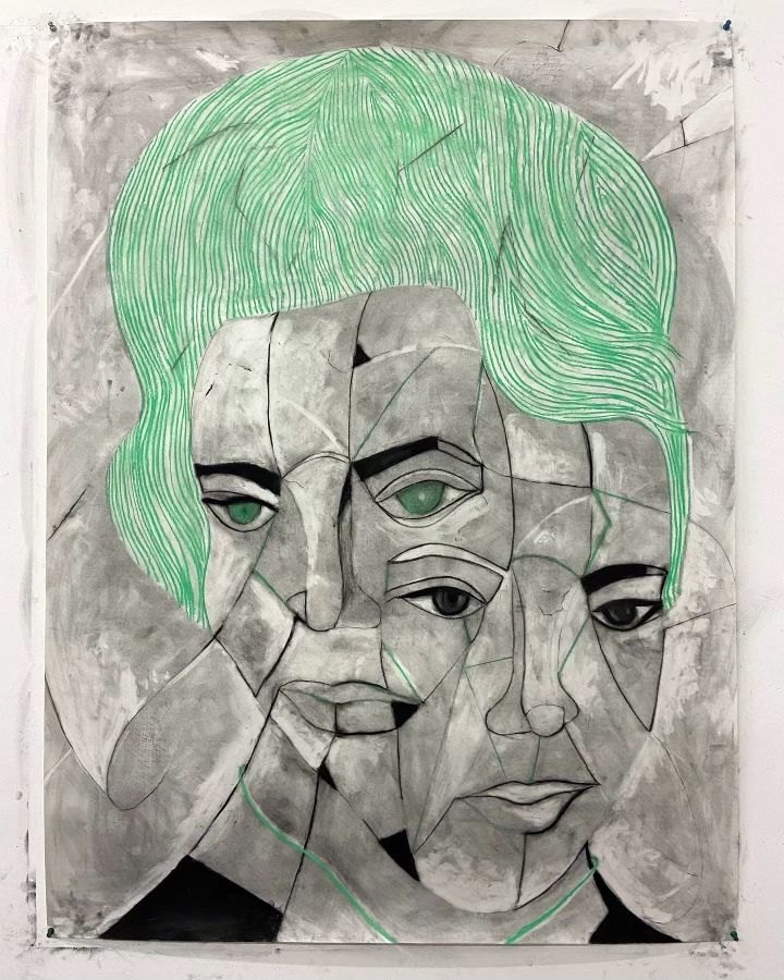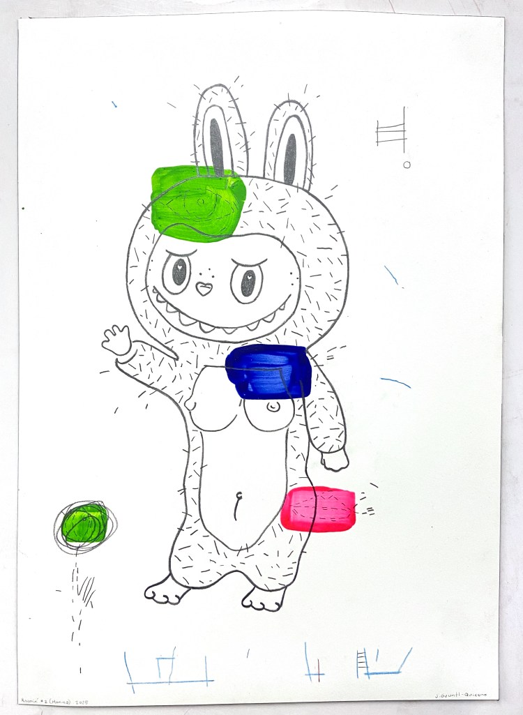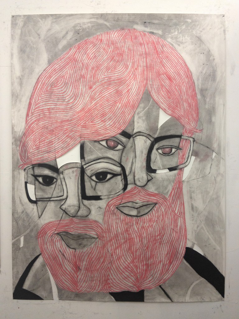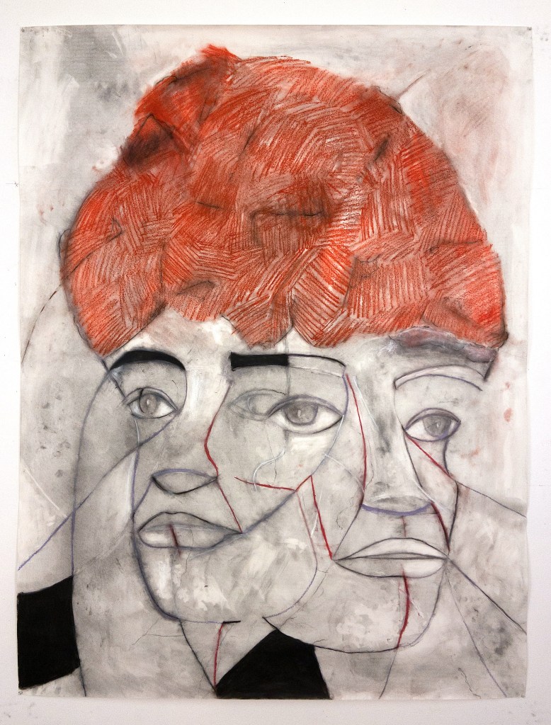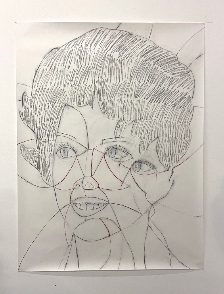 Graphite, acrylic paint, colored pencil on Arches watercolor paper