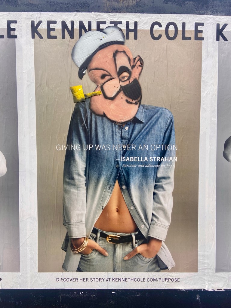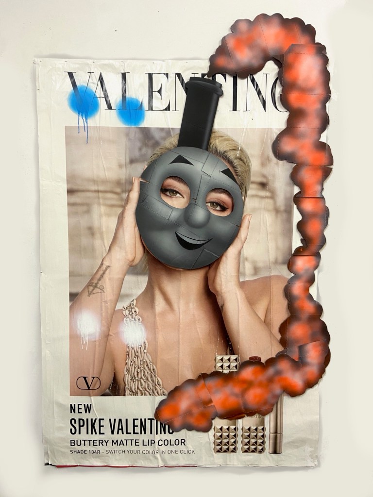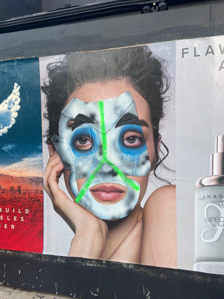 Street installation with reclaimed street poster, recycled cardboard, acrylic paint, spray adhesive