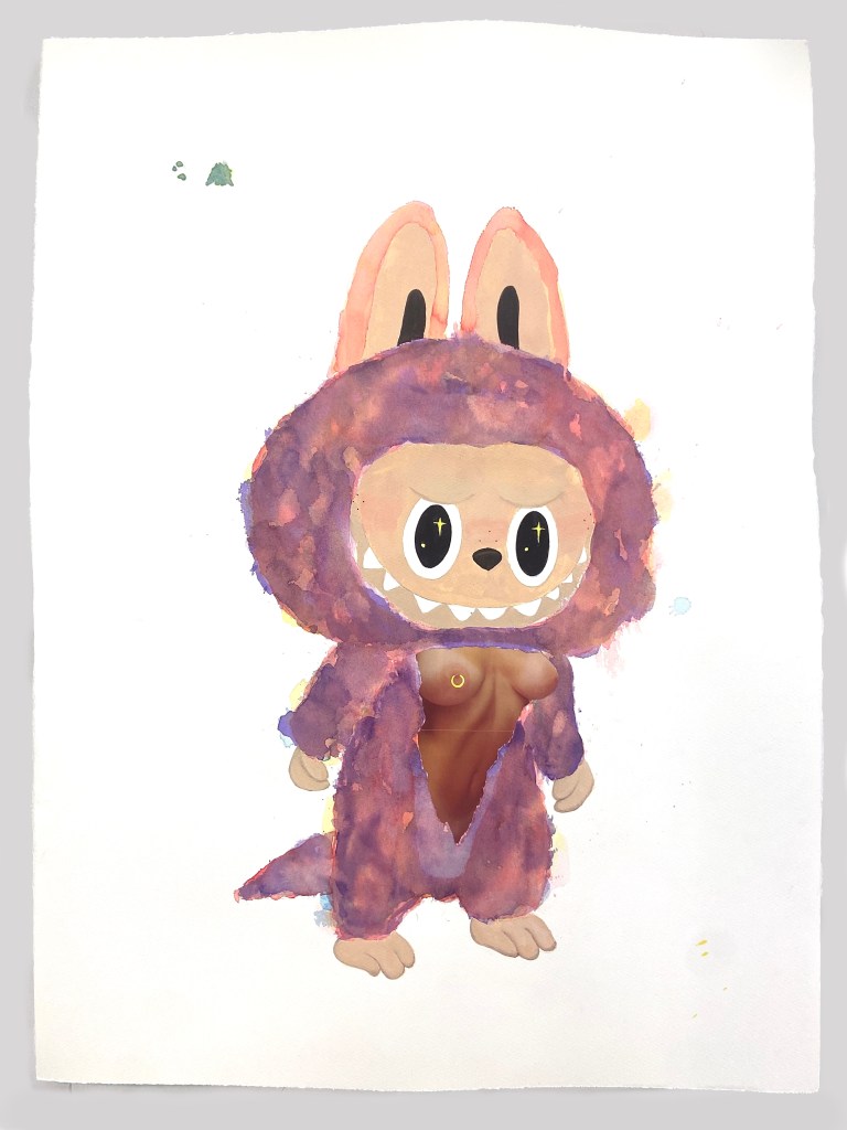 Watercolor and gouache on 130 lb cold press watercolor paper with vintage pinup magazine