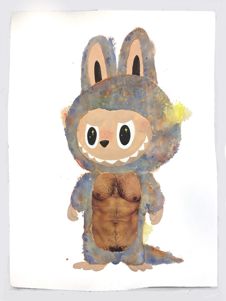 Watercolor, acrylic paint, graphite, colored pencil, cardboard album cover,