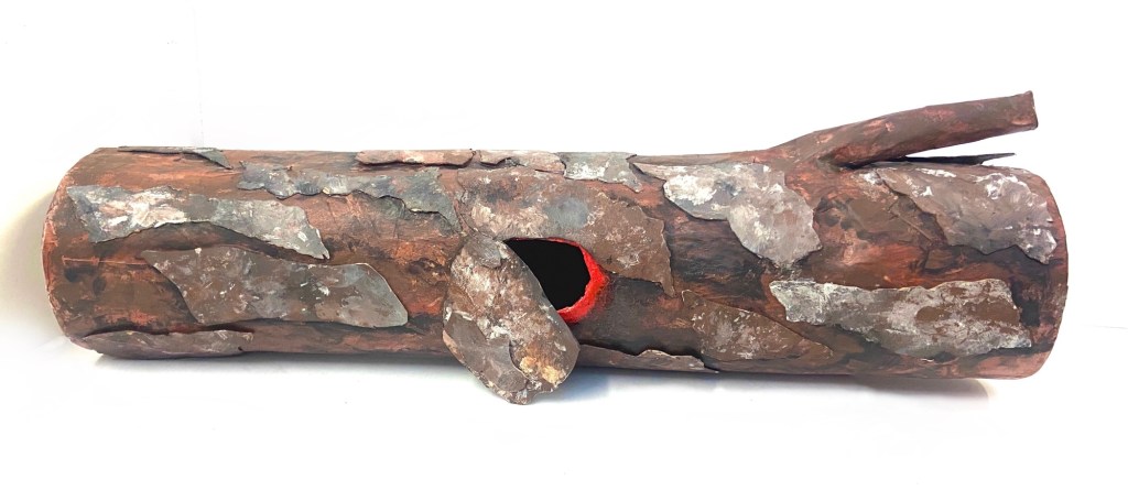 Acrylic paint on recycled cardboard nutrition boxes with recycled plastic lids from medicine bottles, cardboard hospital lunch trays,