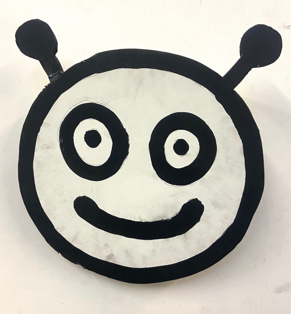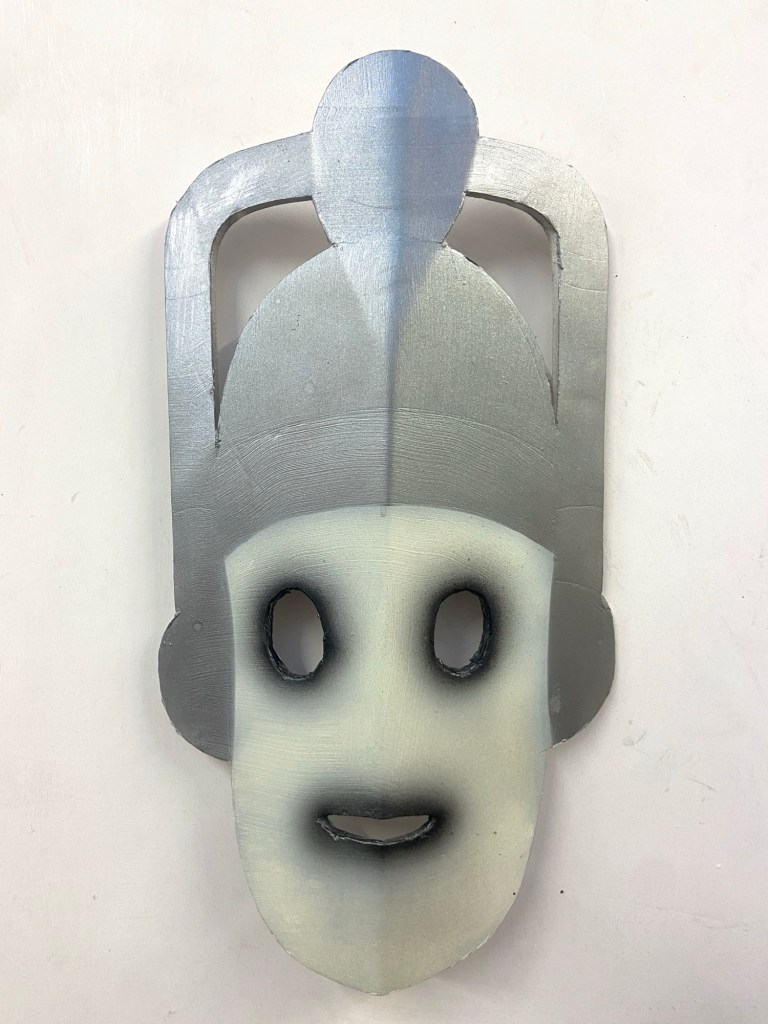 Acrylic paint on 1/4 inch foamcore, elastic, glue